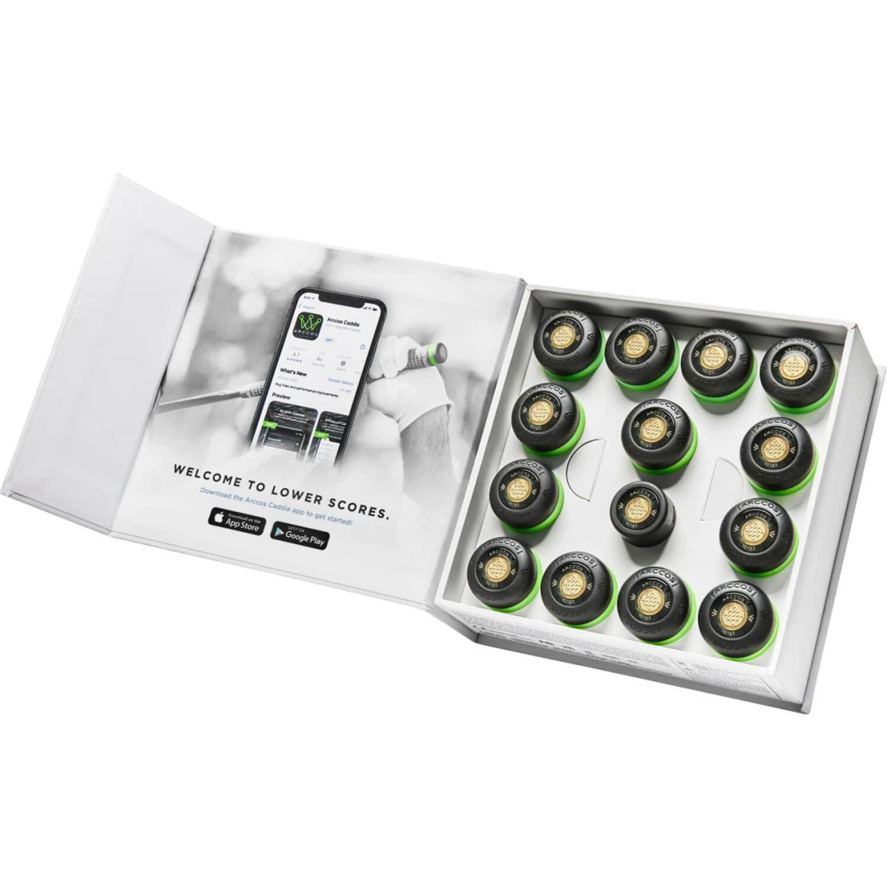 Das neue System umfasst 13 Smart-Sensoren mit einem eleganten neuen Design und einen neuen P3-Puttersensor, der 40% kleiner und 20% leichter ist. Beim Kauf ist eine einjährige Mitgliedschaft für die preisgekrönte Arccos Caddie App inbegriffen.