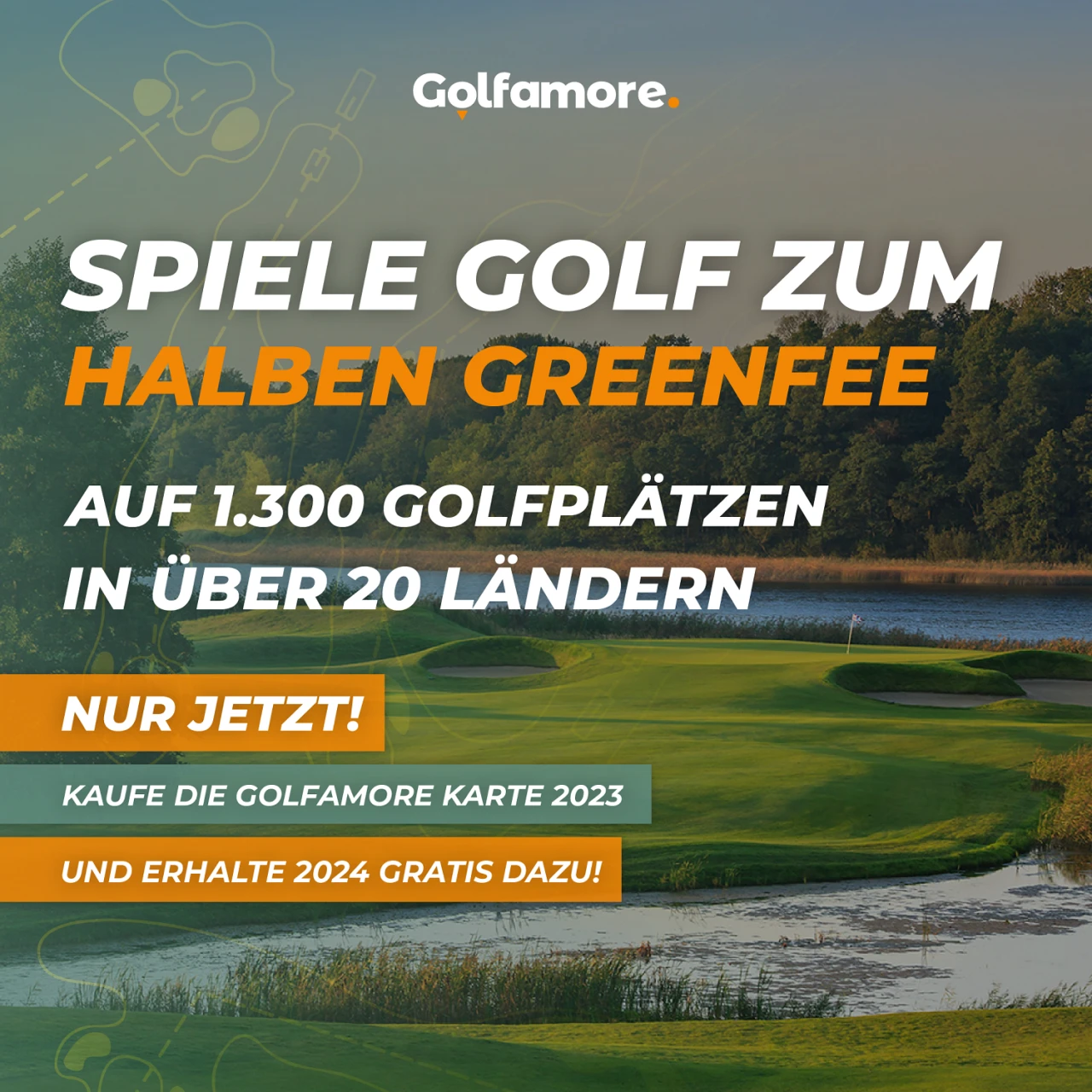 Haben Sie schon das ganze Jahr überlegt, die Golfamore-Karte zu kaufen, sich aus irgendeinem Grund aber nie dazu durchringen können? Dann bietet sich jetzt bei der besten Aktion des Jahres die richtige Gelegenheit! Aktuell erhalten Sie die digitale Golfamore-Karte 2024 kostenlos, wenn Sie die Golfamore-Karte für 2023 kaufen. Wenn Sie also nicht schon mit der Golfamore-Karte zum halben Greenfee golfen, ist es jetzt an der Zeit zuzuschlagen!