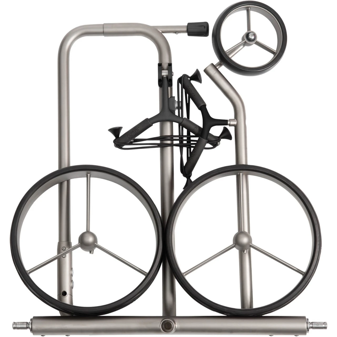 Der benutzerfreundliche Trolley mit nur einer Steckverbindung und dem ultraflachen Push-Fit-Packmaß von 65 x 60 x 10 cm passt samt Zubehör in praktisch jeden Kofferraum. Der 48-Volt-Fahrantrieb bietet eine beachtliche Leistung und eine elektronische Feststellbremse sorgt für sicheren Halt auf dem steilsten Gelände. Dank der benutzerfreundlichen Drehgriffsteuerung und der elektronischen Bremse (Tempomat) ist Fahrspaß auch in schwierigem Gelände garantiert. Das umweltfreundliche JuCad Powerpack mit modernster Lithium-Akkutechnologie wird sicher in Ihrer Golftasche aufbewahrt und sorgt so für eine lange Lebensdauer, während der sportlich-elegante Look des Caddys erhalten bleibt.