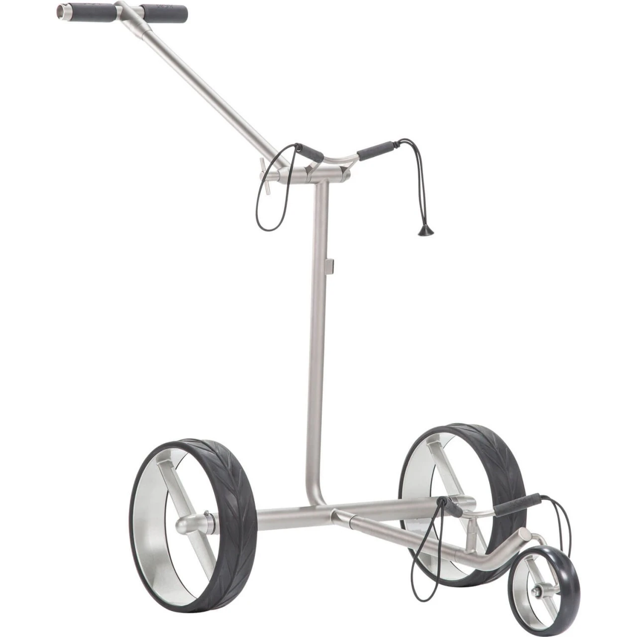 Der JuCad Elektrotrolley Ghost Titan 2.0 bewegt sich mit der neuesten Steuerungs- und Antriebstechnik leise über die Fairways. Zusätzlich zum elektronischen Bremssystem sorgt die elektronisch beidseitige Parkbremse auf extrem abfallenden Hängen für einen festen und sicheren Stand des Trolleys. Mit dem stabilen T-Griff kann der Trolley beidhändig geführt werden und bietet sicheren Halt auf unebenem Gelände. Besonders praktisch ist der Magnetstecker an Ladegerät, Powerpack und Trolley, der für eine sichere Verbindung sorgt.