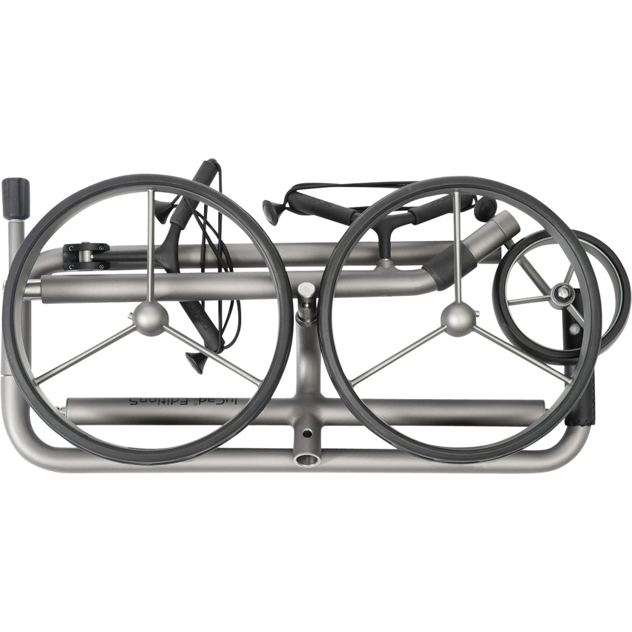 Der Trolley Edition S 3-Rad von JuCad aus einer hochwertigen Aluminiumlegierung ist gleichermaßen robust und stabil. Für die Bags gibt es keine Gewichtsbegrenzung – und dank des höhenverstellbaren Griffs lässt sich der Trolley rückenschonend ziehen oder auch schieben. Zusammengefaltet passt der Trolley zusammen mit dem Golfbag ins Travelcover, was ihn zum idealen Reisebegleiter macht.