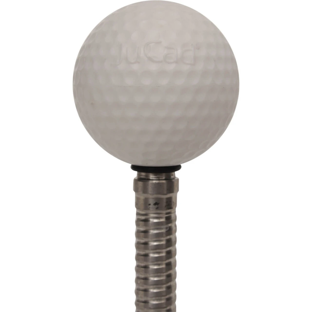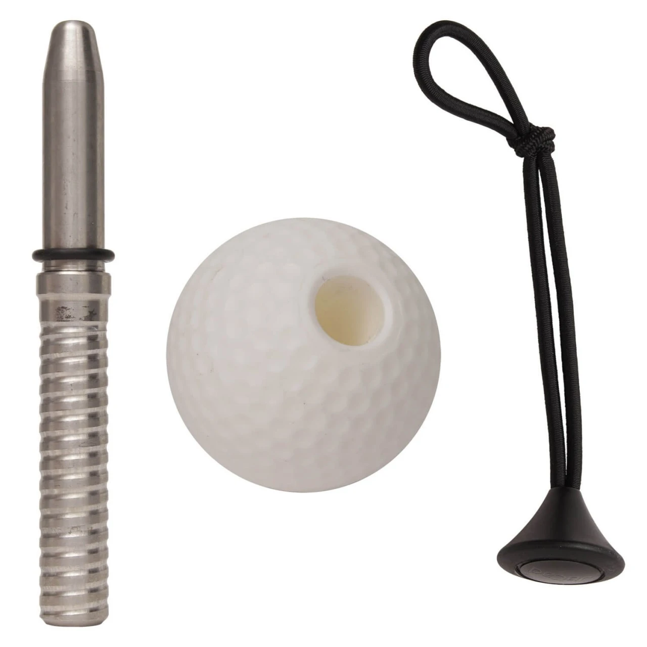 Zusätzlich wird die Schutzkappe in Form eines Golfballes und das Sicherungsgummi für windige Tage mitgeliefert.