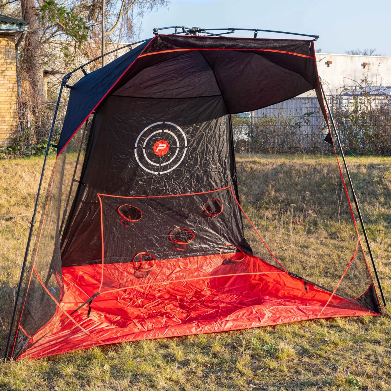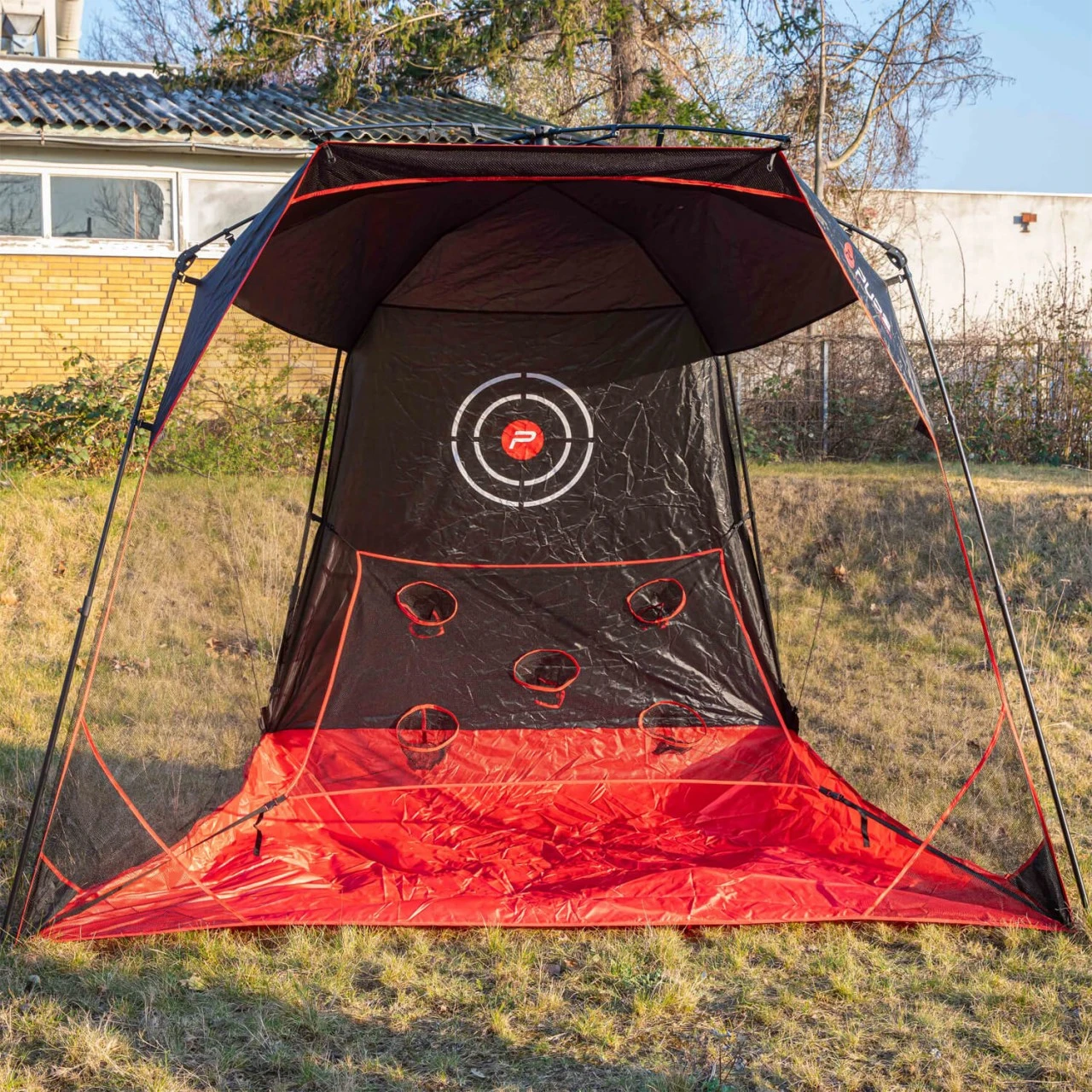 Auf- und Abbau der Driving Range oder Chipping Session in Sekunden! Superstabil dank der Stahl- und Glasfaserstangen. Das Set enthält einen Schlagschutz, ein Chipping-Netz mit 5 Löchern, Erdnägel und eine Tragetasche. Ideal in Kombination mit den Pure2Improve-Schlagmatten (nicht im Lieferumfang enthalten.