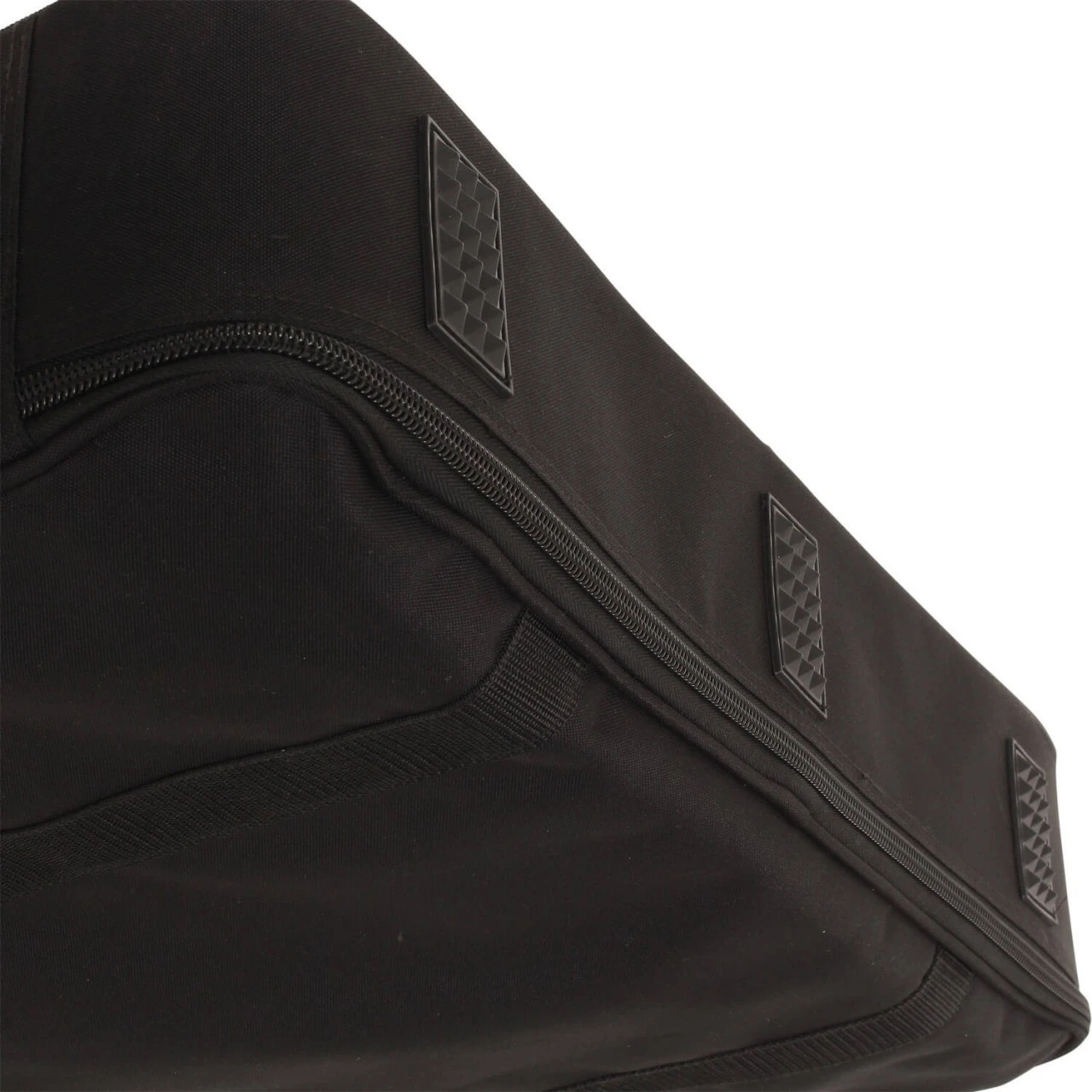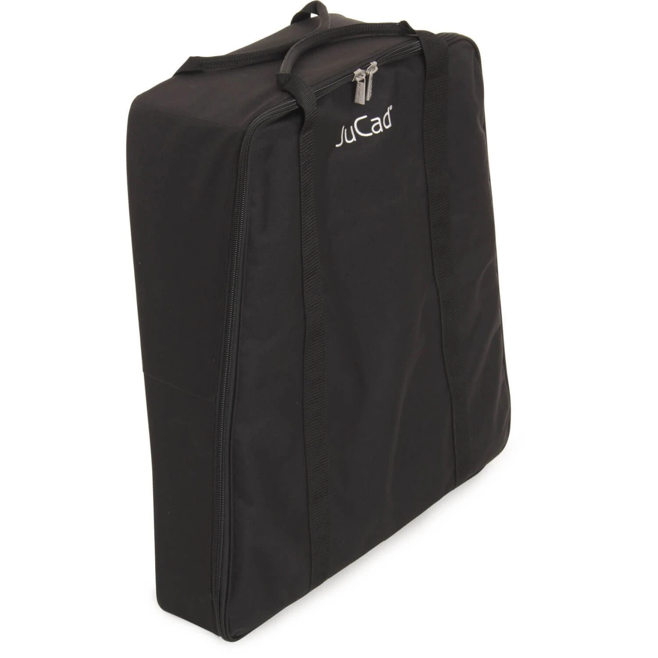 Tragetasche für JuCad Elektrocaddys (Modell Classic). Die Tasche ist besonders flach und platzsparend, mit zwei Henkeln zum Tragen und einem 2-Wege-Reißverschluss.